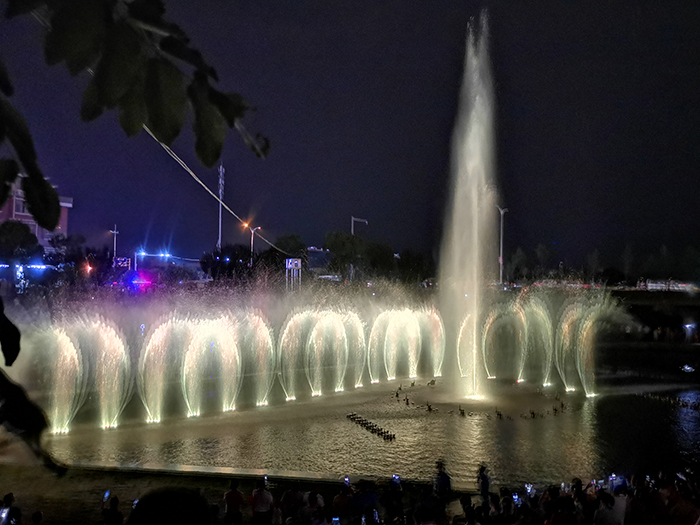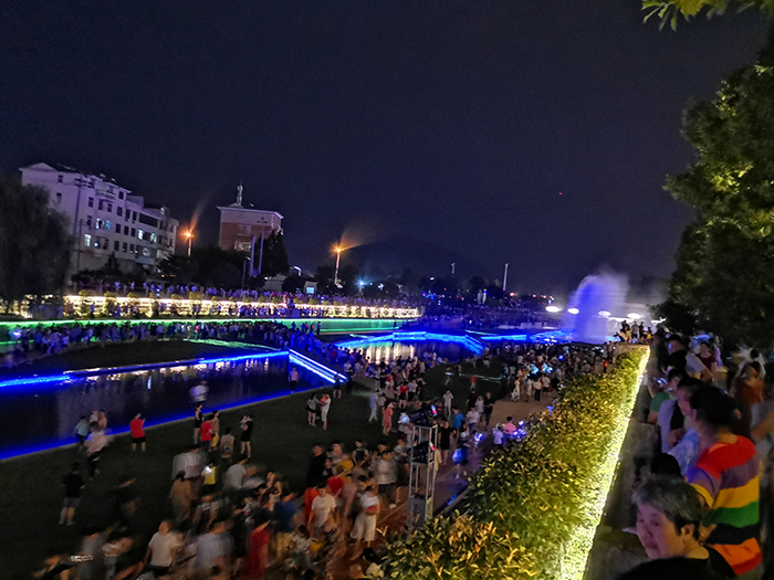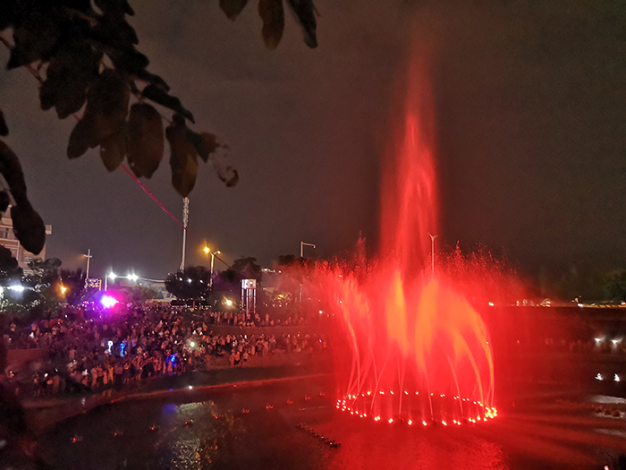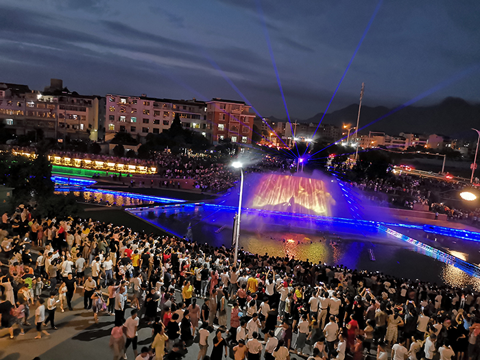大陳江景觀帶音樂(lè)噴泉和水幕電影精彩呈現(xiàn),吸引了上萬(wàn)居民圍觀。