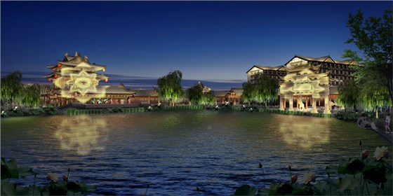 信達科技根據忠義街布局、載體特點,對整體夜景進行規劃,并對建筑、廣場、雕塑、水體、景觀、道路等載體進行具體設計,打造一場互動體驗式的三國主題度假休閑之旅。