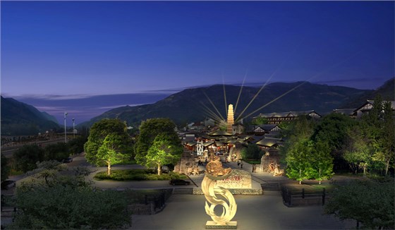 古鎮仿古建筑較多,仿古建筑以暖光色為主,強調建筑細節,幽靜典雅。以萬壽塔為例,萬壽塔始建于明朝,至今已有四百余年。其照明的前提是以保護為前提,不在古塔上安裝燈具,而是在古塔四周立桿投光。所投內容與古塔本身的歷史滄桑感結合,《出師表》、漢文化元素、龍、太極元素等,值得游客慢慢品味與欣賞。