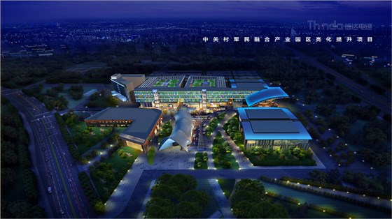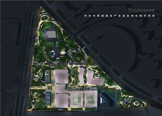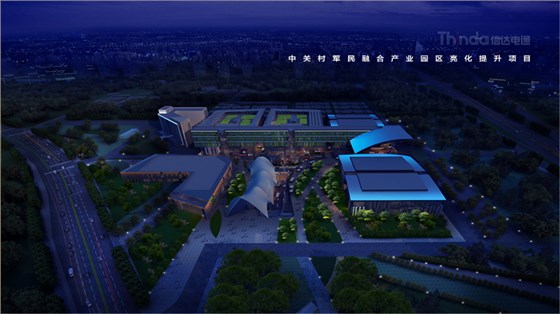 中關村軍民融合產(chǎn)業(yè)園區(qū)的亮化設計主要以建筑燈光為主體設計方向,用燈光的形式突出建筑結構特點,突出時尚、創(chuàng)新、科技、新潮的融合產(chǎn)業(yè)園。園區(qū)建筑結構整體簡潔、大氣,信達電通利用光影效果及景觀元素,打造東西、南北軸向的建筑縱身層次,整體以各種幾何形體組合而成,燈光在設計的同時尊重建筑本身的理念,優(yōu)化夜景氛圍,通過塊與面的結合,塑造一個大氣魄、大追求的文化產(chǎn)業(yè)新品牌。