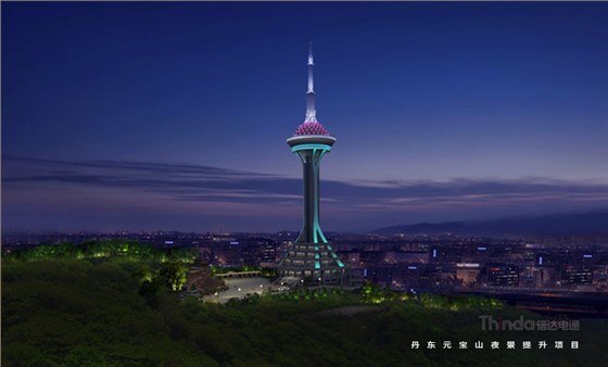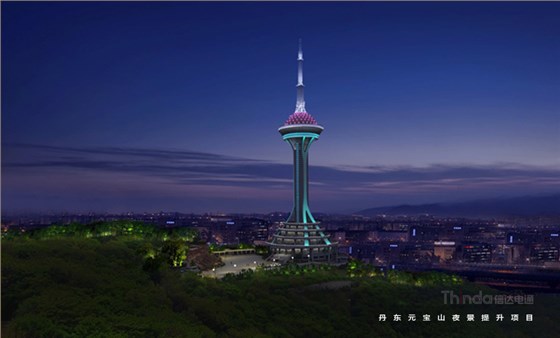 元寶山電視塔建筑風格簡約獨特,識別度較高。信達電通結合建筑功能屬性,以動靜燈光結合的方式展現電視塔的醒目高度,以及其獨特夜間形態。