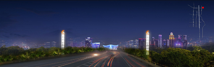 高新南區(qū)東門(mén)戶(hù),以建筑群落和構(gòu)筑物為夜景空間表現(xiàn)基礎(chǔ),突出門(mén)戶(hù)區(qū)域的夜景標(biāo)識(shí)。