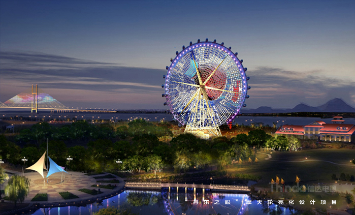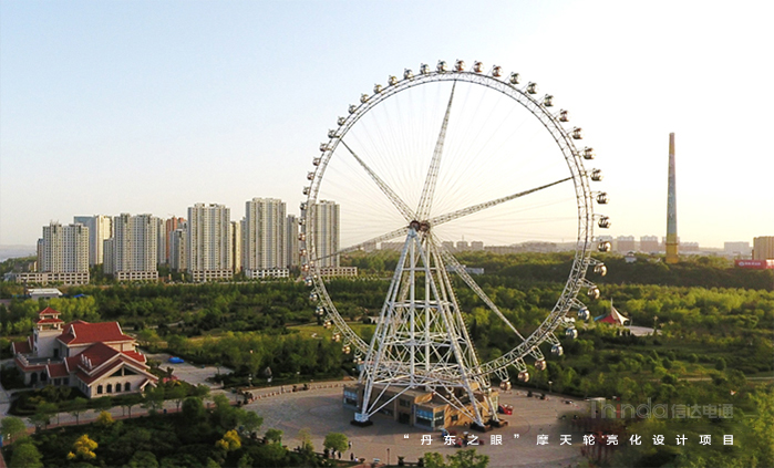 被譽(yù)為“丹東之眼”的摩天輪位于丹東新區(qū)的國(guó)門灣公園內(nèi),該公園占地17萬(wàn)平方米,是丹東比較知名的公園,而且丹東非常靠近中朝邊境線,所以此地區(qū)也被譽(yù)為:中朝邊境互補(bǔ)合作的橋頭堡和未來的區(qū)域綜合交通樞紐。在這重要的經(jīng)濟(jì)和科技發(fā)展地,丹東之眼屹立于此,為這絕美的景色填上了華麗的一筆,而信達(dá)電通的照明設(shè)計(jì)也體現(xiàn)在國(guó)門灣公園內(nèi)的標(biāo)志性建筑—國(guó)門灣摩天輪。