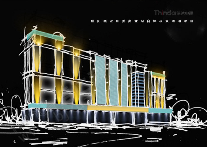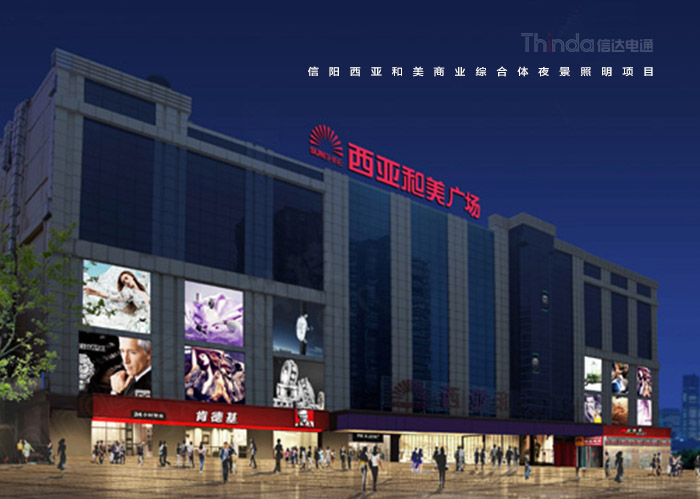 西亞和美商業(yè)廣場地處于河南省信陽市,位于東方紅大道、南臨北京南路、東臨統(tǒng)一街,周邊有鳳凰新世界、東方京城、軸線之廊,位置優(yōu)越,交通便利。這里信陽人民平時生活娛樂與購物餐飲的地方,也是IGA中國區(qū)優(yōu)秀零售商。目前商業(yè)廣場夜景照明已經(jīng)跟不上整體的商業(yè)需求,急需進行照明設計施工改造升級,為此信陽西亞和美業(yè)主聯(lián)系到信達電通,雙方根據(jù)本案開展照明設計施工合作。